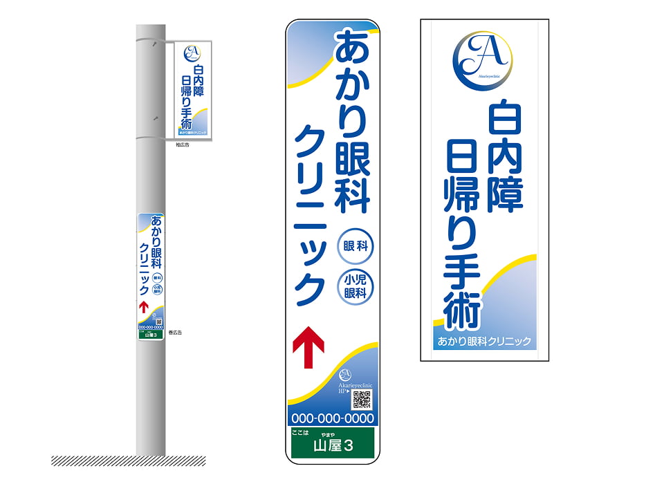 地域にPR!クリニック名・店舗名を強調したデザインは、地域の人々への認知度アップに効果的です。